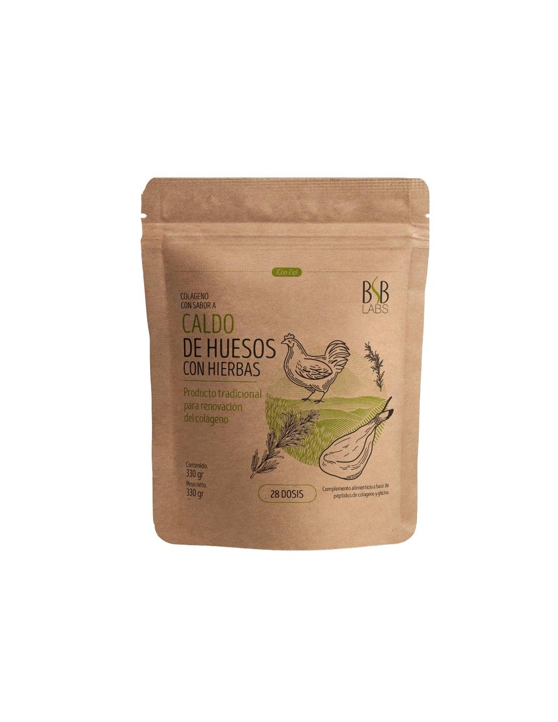 Caldo de Huesos con Hierbas. Complemento alimenticio a base de péptidos de colágeno y glicina.