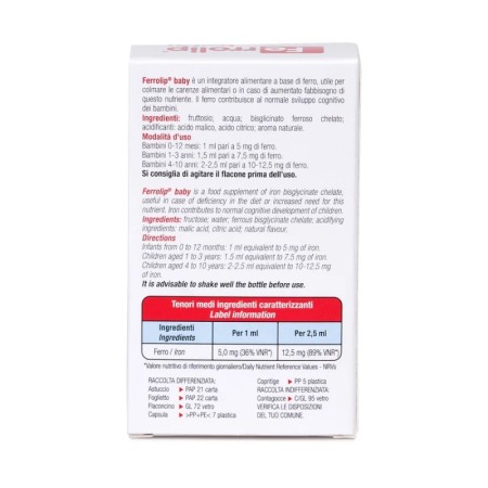 Contenido por dosis: En 1 ml: hierro: 5 mg (36 % VRN*) En 2,5 ml: hierro: 12,5 mg (89 % VRN*) *VRN: Valor de Referencia de Nutrientes