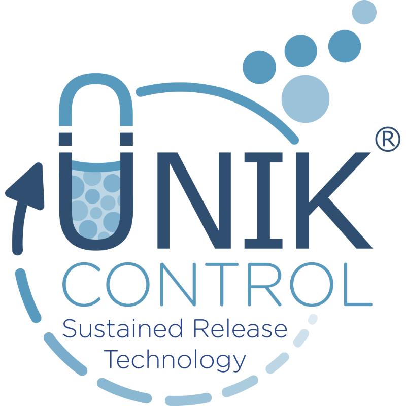 - Tecnología UNIK Control Release® : cápsula HPMC con microgránulos microencapsulados y matriz gastro-resistente, diseñada para proteger los ingredientes frente al ácido gástrico y favorecer su liberación en el intestino delgado, con liberación gradual de los componentes.