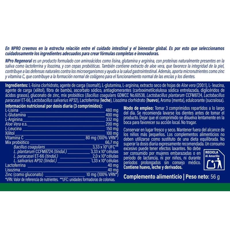 NPro Regenoral es un producto formulado con aminoácidos (L-lisina,
